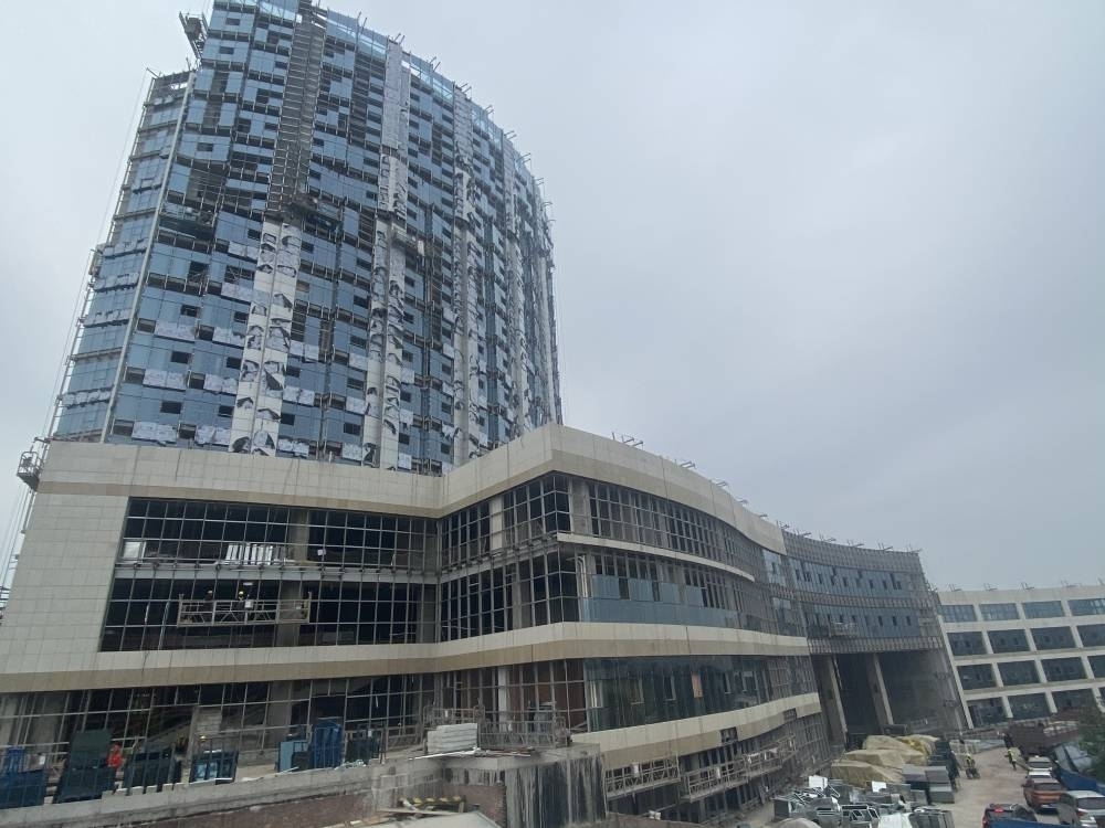 地下2層,地上16層,總高度67.5m,基礎為旋挖樁基礎,主體為框架剪刀力墻結構,外墻為鋁板、石材及玻璃幕墻,建筑面積38135㎡。