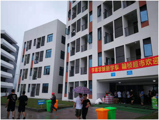 開學(xué)前夕,新的學(xué)生宿舍已投入使用,迎接新生的到來。此次投入使用的3棟宿舍樓均為6層建筑,建筑面積約15400平方米,共有四人間宿舍330間,可供1300名學(xué)生住宿,為方便殘疾學(xué)生入住,特設(shè)4間殘疾人專用宿舍。
