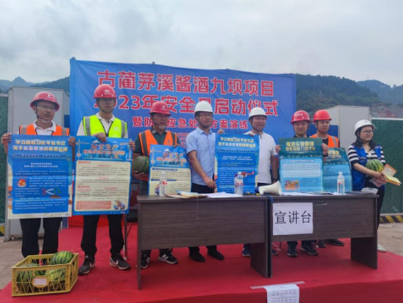 6月8日下午,古藺茅溪醬酒九壩項(xiàng)目施工現(xiàn)場(chǎng)開展2023年安全生產(chǎn)月啟動(dòng)儀式暨防火應(yīng)急處置方案演練活動(dòng),活動(dòng)共計(jì)100人參與,40人參演,200余人觀摩,活動(dòng)得到建設(shè)單位的一致肯定,并獲得安全文明施工加分。